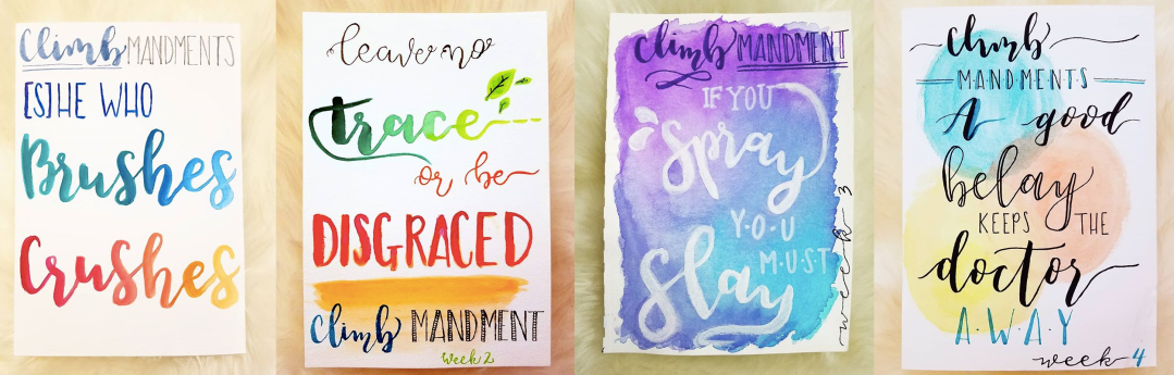 The climbing gods have spoken, handing a list of commandments from on high to Instagram user @hamgelahamu and her crew of #icecreamclimbers. Hear the good word in her beautiful brush lettering depictions below.
