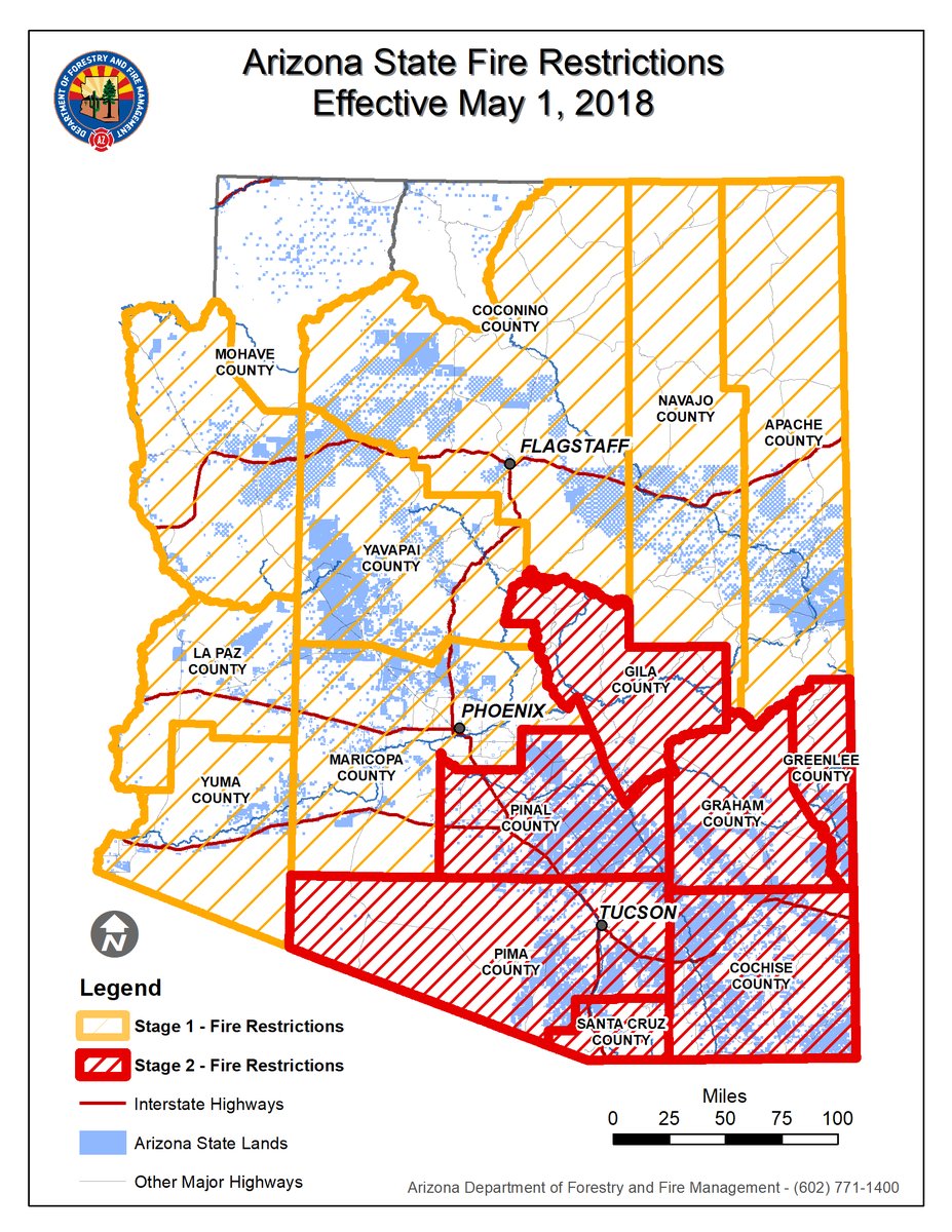To help prevent wildfires, the Arizona Department of Forestry and Fire Management has placed Stage II Fire Restrictions across Southern Arizona. As of Friday, May 4, Coconino County, home to popular climbing area Priest Draw, will move from Stage I Fire Restrictions to Stage II Fire Restrictions. In the past, failure to comply with Fire Restrictions has resulted in temporary closures of recreational areas.